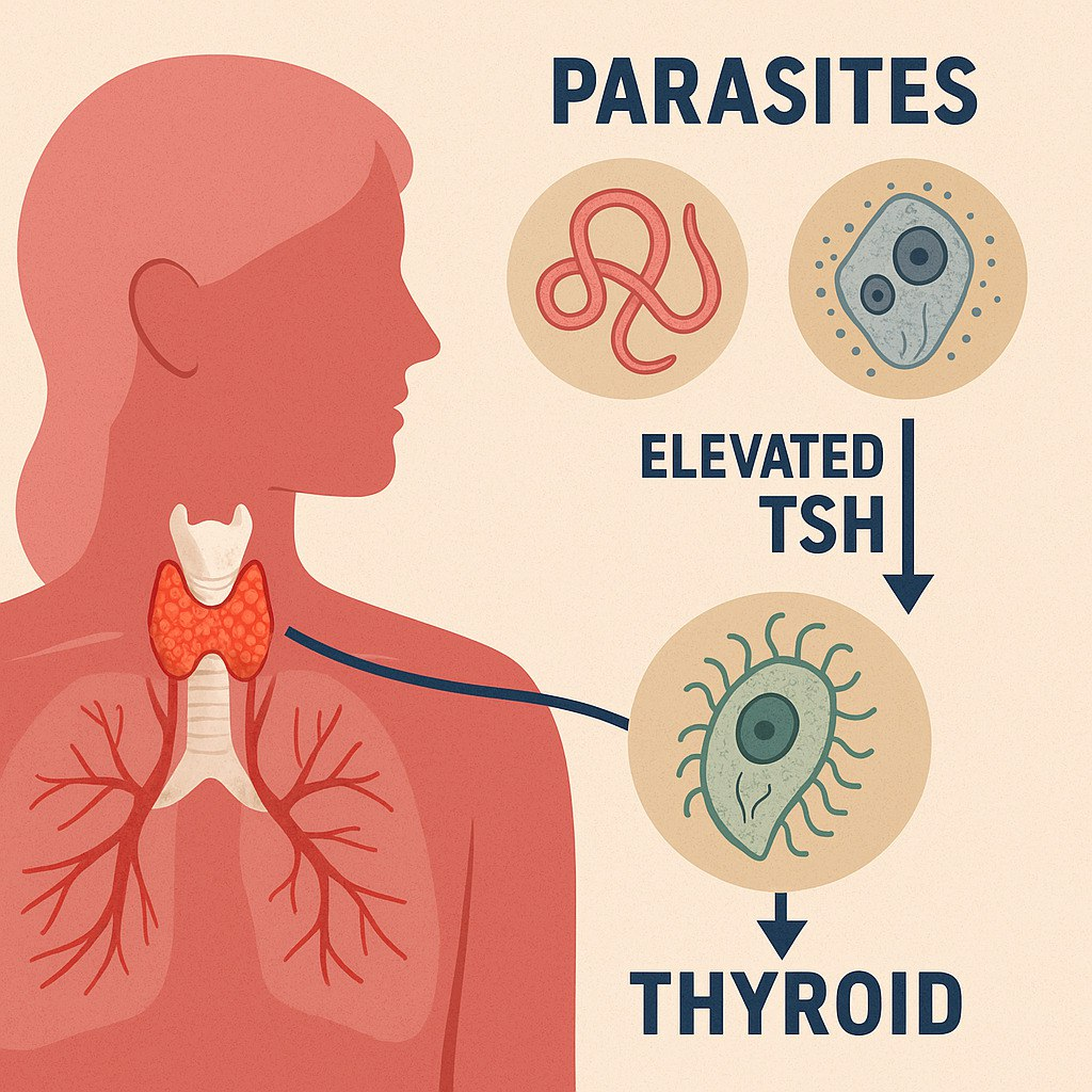З аналізу аналізів деяких людей зрозумів що є непрямий вплив паразитів на роботу щитовидної залози. Причому спостерігається досить цікава картина — людина може мати високий ТТГ, що вказує на гіпотиреоз, але немає антитіл у ТПО та ТГ. Логічно подумати що є брак йоду, починаєш давати цей йод, а ТТГ не падає, і антитіл все також немає. Лікарі в цьому випадку дають вам дозу левотироксину та посилають на *й. Але такий шлях не моя доля.
